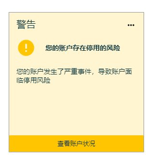 該警告明確提出,賣家的賬號發生了嚴重事件,造成 賬號面臨著停止使用風險。