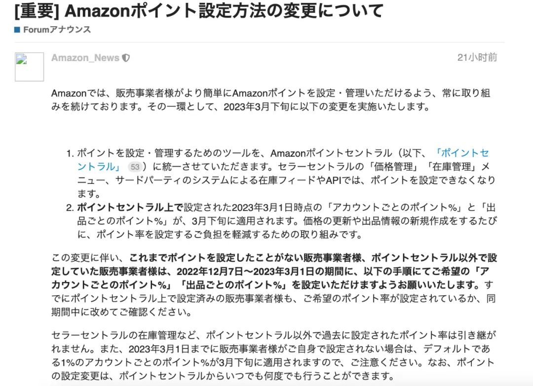 亞馬遜日本站發布了公告稱為了讓賣家更加輕松地設置及管理亞馬遜積分,它的設置方法變更將于2023年3月下旬升級,下面是公告內容: