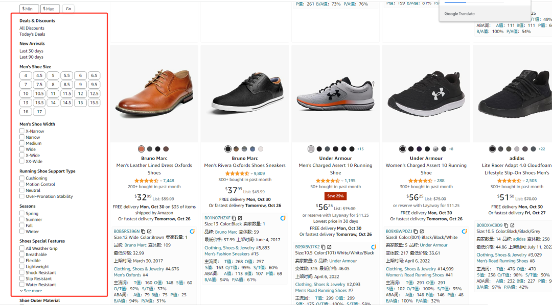 關(guān)鍵屬性位置:搜索結(jié)果頁(yè)的最左側(cè)、Listing頁(yè)面中,如下圖這些屬性。